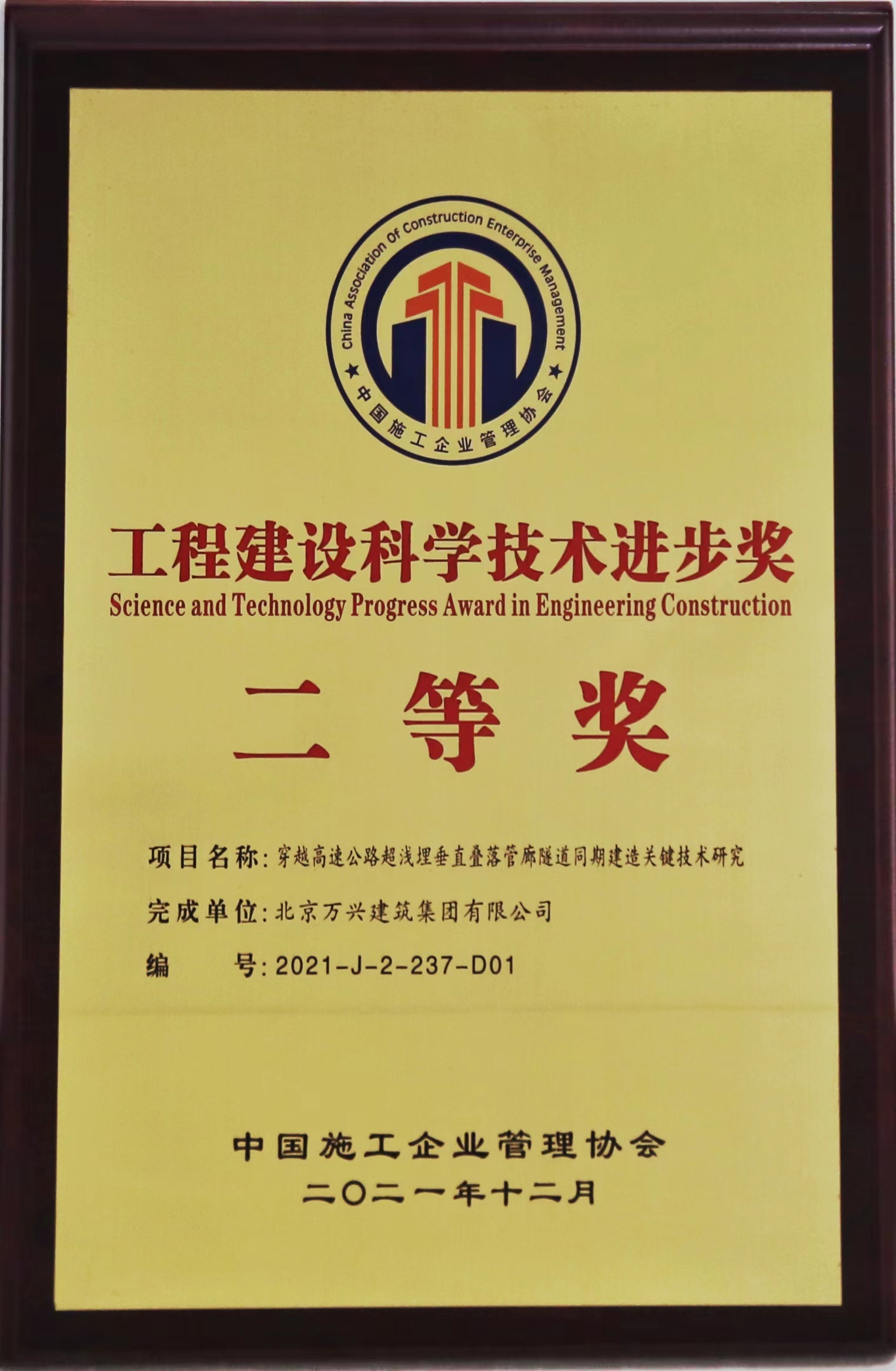 【概要描述】近日,中國(guó)施工企業(yè)管理協(xié)會(huì)向集團(tuán)頒發(fā)了《工程建設(shè)科學(xué)技術(shù)進(jìn)步獎(jiǎng)二等獎(jiǎng)》證書(shū)。以集團(tuán)董事長(zhǎng)作為第一完成人主持完成的“穿越高速公路超淺埋垂直疊落管廊隧道同期建造關(guān)鍵技術(shù)研究”科技成果榮獲中施企協(xié)工程建設(shè)科學(xué)技術(shù)進(jìn)步獎(jiǎng)二等獎(jiǎng)。