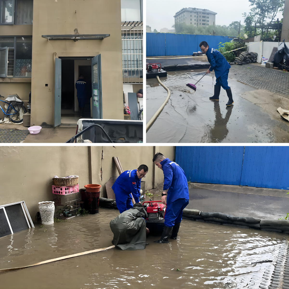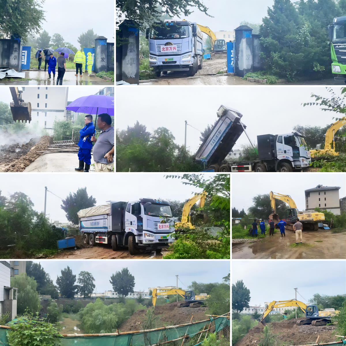 8月1日,受臺(tái)風(fēng)“杜蘇芮”影響,北京市出現(xiàn)連續(xù)強(qiáng)降雨,致使大興區(qū)果嶺假日小區(qū)“深10米基坑被暴雨沖出一道裂縫,將雨水灌進(jìn)了小區(qū)7號(hào)樓地下室”,為避免樓體沉降以及小區(qū)36戶居民受災(zāi),萬興集團(tuán)聞“險(xiǎn)”而動(dòng),火速派出應(yīng)急搶險(xiǎn)隊(duì),冒雨趕往受災(zāi)現(xiàn)場(chǎng)。