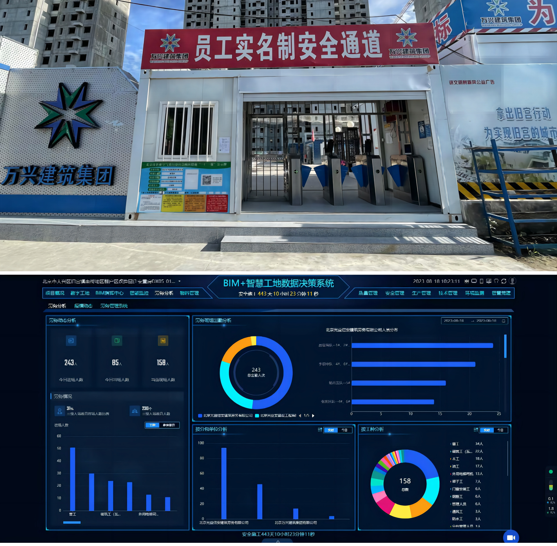 會(huì)上,萬興建筑集團(tuán)舊宮南街安置房項(xiàng)目BIM負(fù)責(zé)人就項(xiàng)目智慧工地具體應(yīng)用情況進(jìn)行了分享。 在集團(tuán)副總經(jīng)理、十五分公司經(jīng)理呂寶山的支持和帶領(lǐng)下,項(xiàng)目自2022年6月起積極推進(jìn)智慧工地建設(shè),對(duì)施工現(xiàn)場“人、機(jī)、料、環(huán)”等關(guān)鍵要素的智能化管理和數(shù)據(jù)信息進(jìn)行互聯(lián)互通,動(dòng)態(tài)掌握項(xiàng)目情況,提高項(xiàng)目管控的準(zhǔn)確性、及時(shí)性、真實(shí)性和完整性,應(yīng)用成果在經(jīng)濟(jì)、社會(huì)、科技、時(shí)間、成本、工期等多方面取得了較好的效益。
